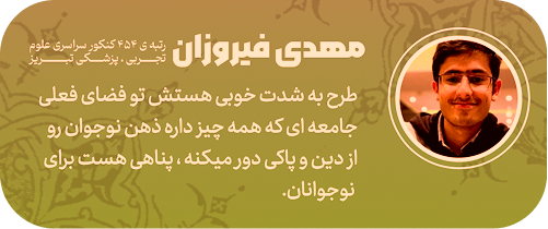 محیطی کاملا سالم و معنوی با روحیه انقلابی و یادگیری مبانی دینی